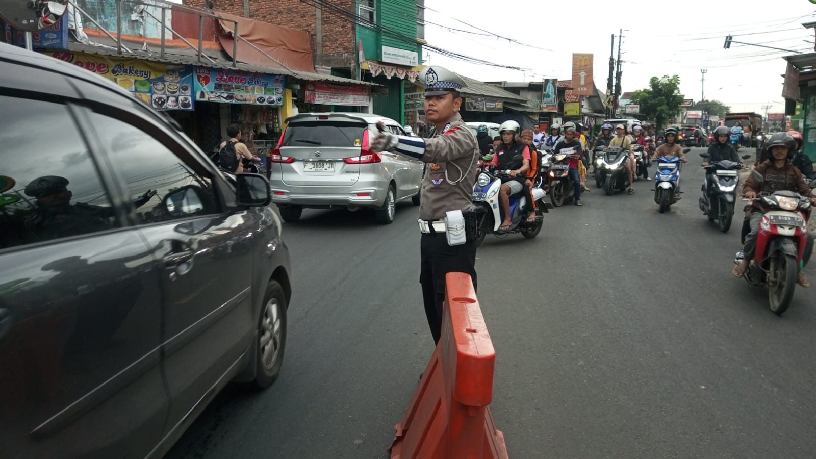 Anggota Lantas Polsek Ciampea Polres Bogor, membantu masyarakat mengatur lalu lintas dan ketika hendak menyebrang jalan, petugas juga melakukan pengaturan terhadap anak-anak sekolahan yang menyebrang menuju Sekolah.