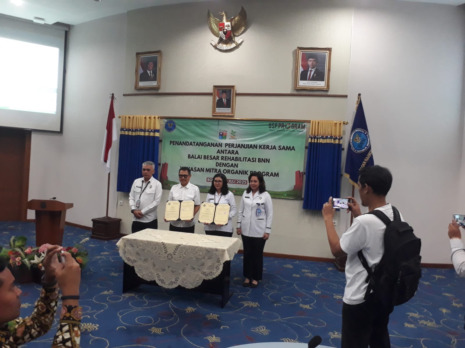 CorongNusantaraNews.com — Lido — Penandatanganan perjanjian kerja sama antara Balai Besar Rehabilitasi BNN Lido dengan Yayasan Mitra Organik Program untuk peningkatan kapasitas para pasien di bidang pertanian. Senin, 21 Juli 2025.