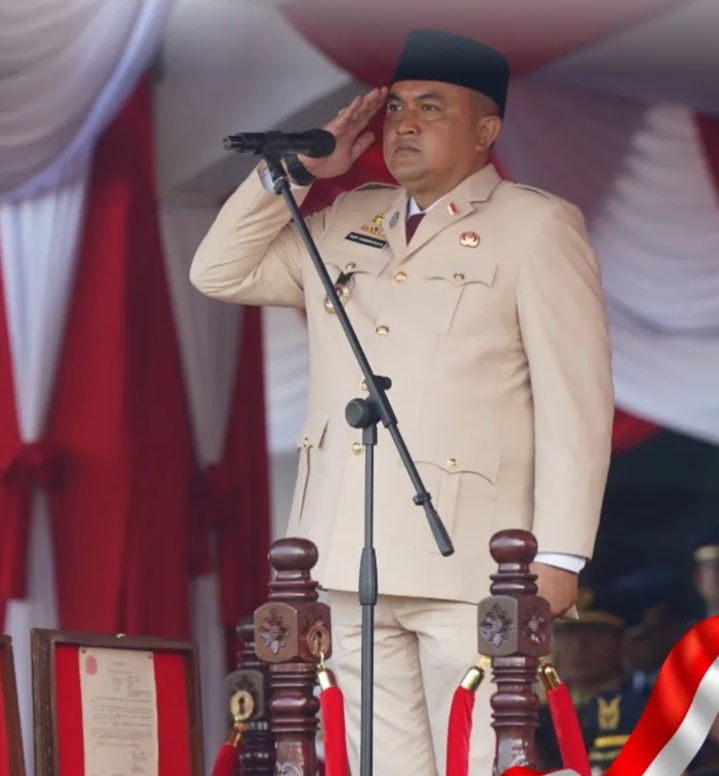 CorongNusantaraNews.com — Cibinong — Bupati Bogor, Rudy Susmanto menjadi Inspektur Upacara pada peringatan HUT ke-80 Republik Indonesia. Upacara berlangsung khidmat di Lapangan Tegar Beriman Cibinong, Minggu (17/8/2025).