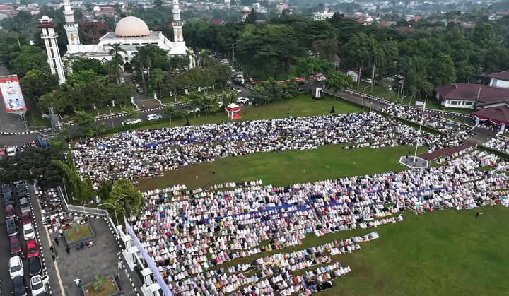 CorongNusantaraNews.com — Cibinong — Bupati Bogor, Rudy Susmanto, bersama Wakil Bupati Bogor, Ade Jaro, bersama masyarakat Kabupaten Bogor melaksanakan Shalat Idul Fitri 1446 Hijriah di Lapangan Tegar Beriman, Cibinong, pada Senin (31/3/25). Shalat yang dihadiri oleh berbagai elemen masyarakat, termasuk seluruh Pejabat Daerah Kabupaten Bogor, berlangsung dengan khidmat dan penuh rasa syukur.