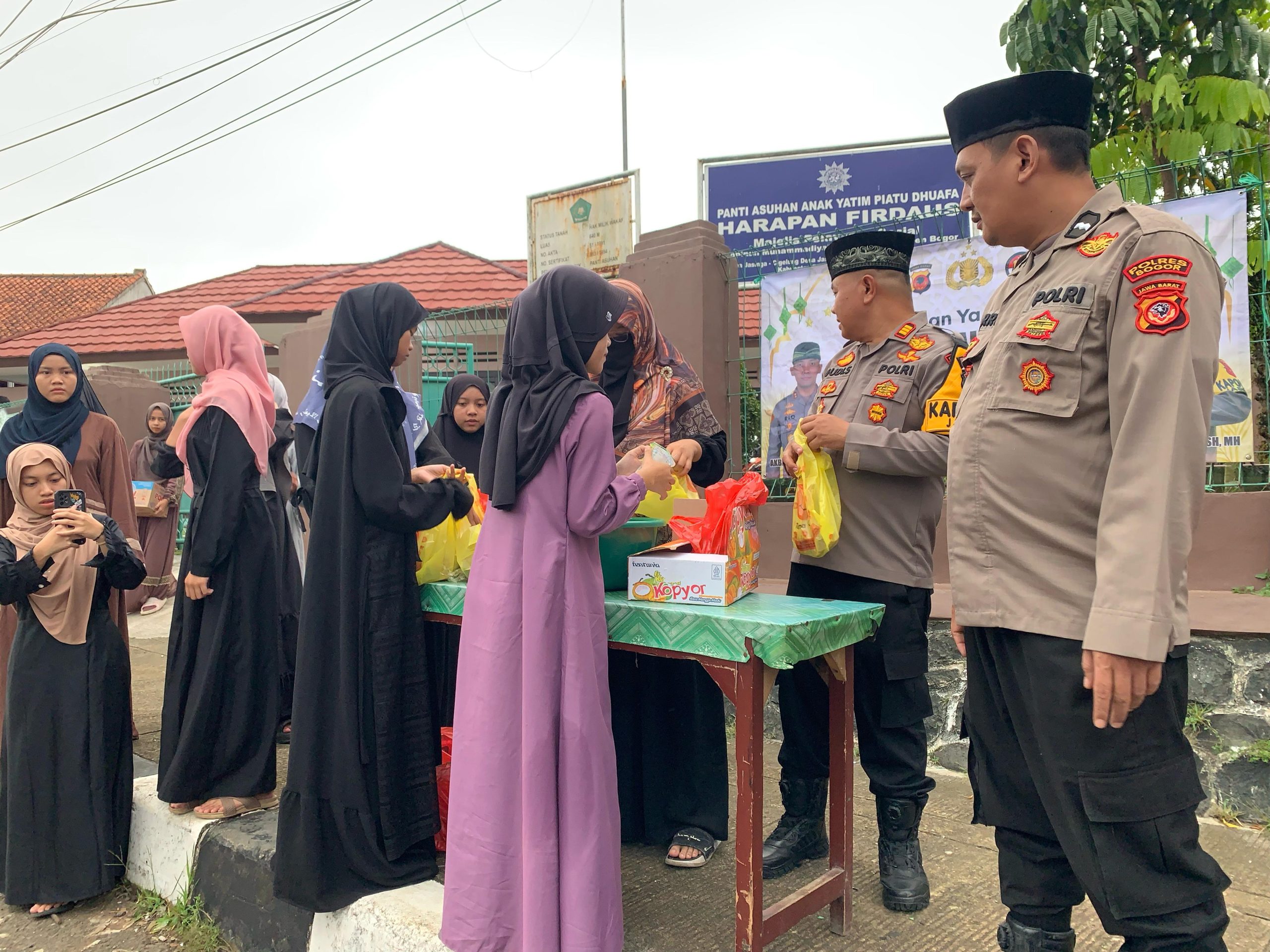 CorongNusantaraNews.com — Polres Bogor — AKP Budi Sehabudin SH.,MH turun langsung Bersama Personil Polsek Jasinga melaksanakan berbagi Takjil kepada warga Jasinga serta Buka Bersama serta santunan Anak Yatim Piatu dan Kaum Dhuafa Harapan Pirdaus Jasinga di bulan Ramadhan 1446H.