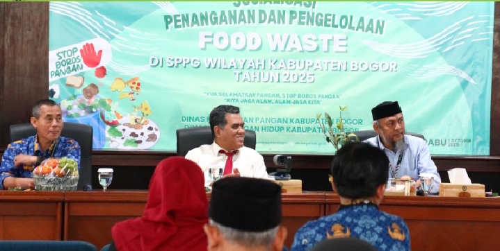 Sebagai bentuk nyata dukungan terhadap program Makan Bergizi Gratis (MBG), Pemerintah Daerah Kabupaten Bogor melalui Dinas Ketahanan Pangan bersama Dinas Lingkungan Hidup Kabupaten Bogor melaksanakan sosialisasi penanganan dan pengelolaan food waste. Kegiatan ini dilaksanakan di lingkup Satuan Pelayanan Pemenuhan Gizi (SPPG) di Kabupaten Bogor.