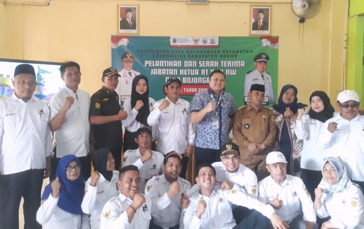 CorongNusantaraNews.com — Bojonggede — Pemerintah Desa Bojong Baru, Kecamatan Bojong Gede, Kabupaten Bogor, melantik sekaligus sertijab 15 orang pengurus RW dan 80 orang pengurus RT se- Desa Bojong Baru. Periode 2025-2030 bertempat di Aula Kantor Desa Bojong Baru, sabtu (22/2/2025).