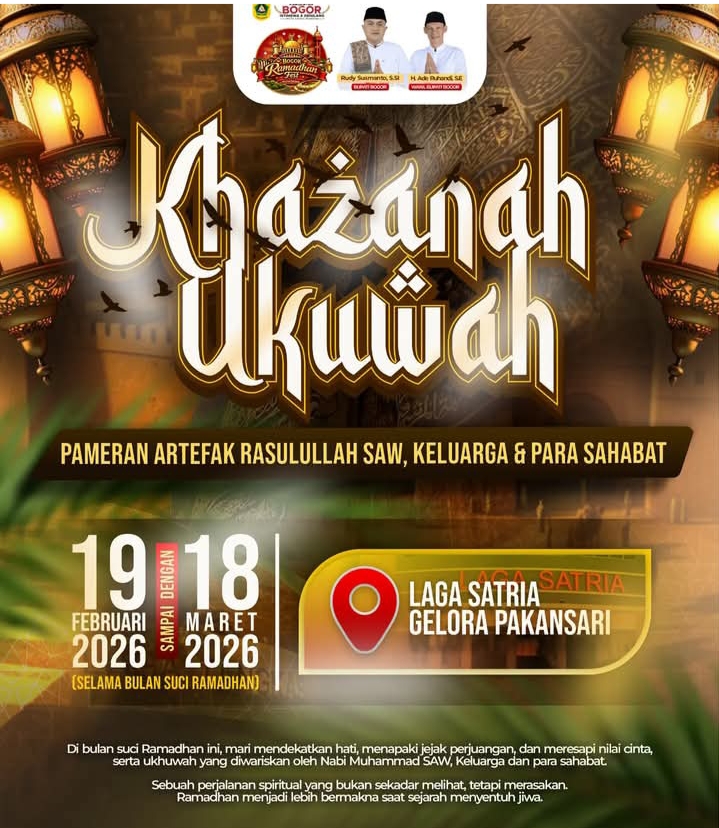 CorongNusantaraNews.com — Cibinong — Momentum bulan penuh berkah, bulan suci Ramadhan, Pemerintah Kabupaten Bogor menggelar Pameran Artefak Rasulullah SAW, Keluarga & Para Sahabat sebagai bagian dari rangkaian kegiatan Ramadan 1447 H.