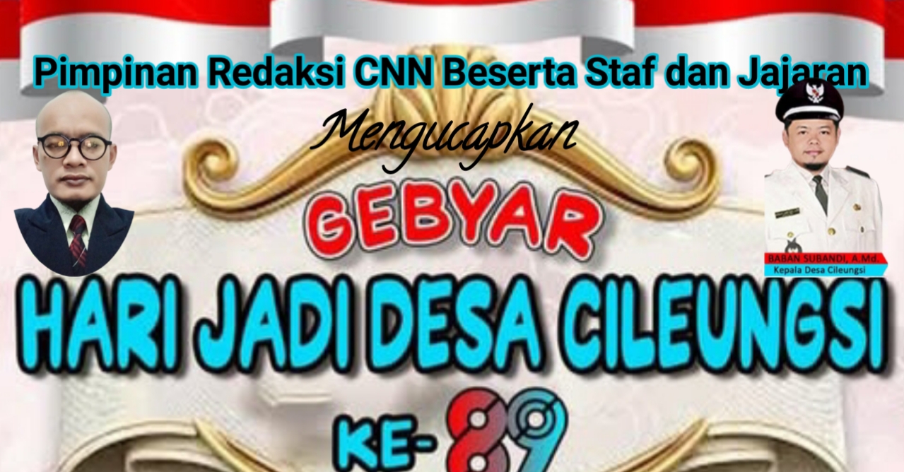 CorongNusantaraNews.com — Cibinong — Wilujeng milangkala, Pimpinan Redaksi beserta seluruh staf dan jajaran menyampaikan ucapan Selamat Hari Jadi ke-89 Desa Cileungsi, Kecamatan Ciawi, Kabupaten Bogor.