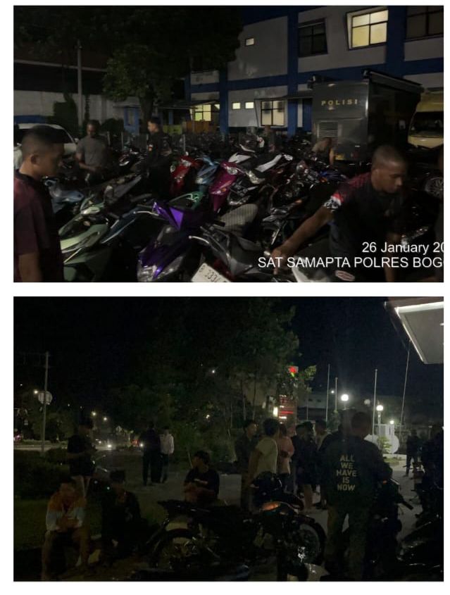 CorongNusanatarNews.com — Polres Bogor — Giat Pembubaran Balap Liar Di Jalan Alternatif Sentul, Hari Minggu, tanggal 26 Januari 2025 pukul 01.40 – 05.30 WIB.