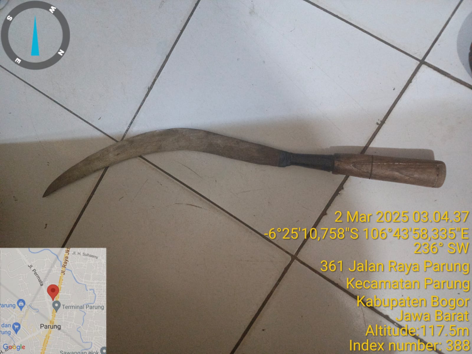 -1 (satu) bilah celurit, ukuran sedang, yang gagangnya kayu warna coklat.