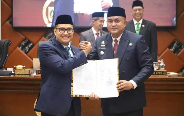 CorongNusantaraNews.com — Cibinong — Bupati Bogor, Rudy Susmanto dan Ketua DPRD Kabupaten Bogor, Sastra Winara tandatangani nota kesepakatan bersama antara kepala daerah dengan DPRD Kabupaten Bogor terhadap perubahan Kebijakan Umum APBD (KUA) dan perubahan Prioritas Dan Plafon Anggaran Sementara (PPAS) tahun anggaran 2025.
