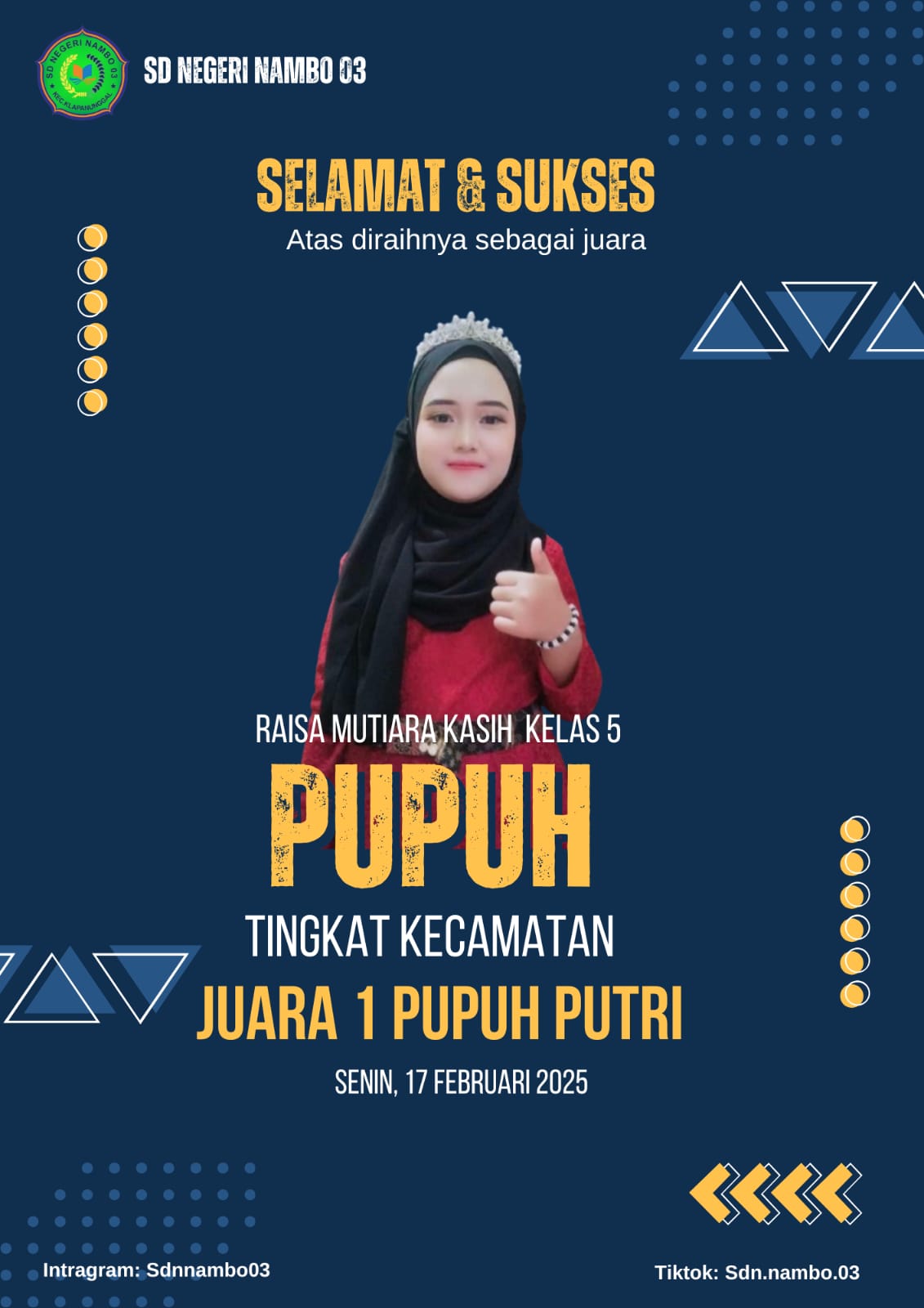 “Alhamdulillah SDN Nambo 3 LOMBA PUPUH anak saya neng Raisa membawa nama baik sekolahan mendapatkan juara 1 Sekecamatan Klapanunggal. mudah-mudahan kedepannya bisa membawa nama baik lagi antar kabupaten, nyuhunkeun fi do’a na ka para bapak ibu dan warga khususnya warga Bantarjati”, tutur Saefudin melalui chat WhatsApp.
